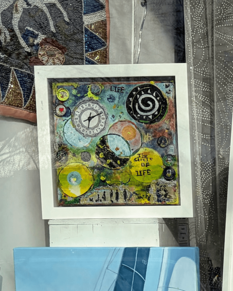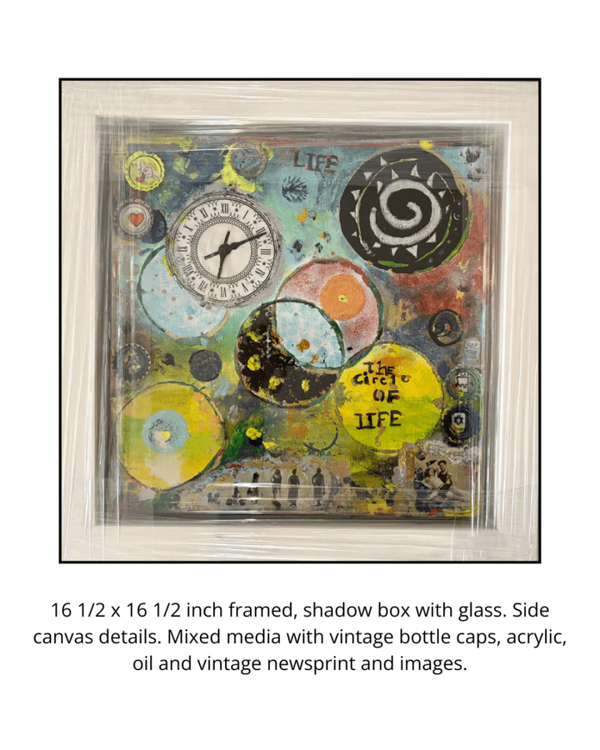What was created were works of art that tell a story, incorporating vintage newsprint, song lyrics, and sociocultural messages and select written words – from Virginia Woolf to Stevie Nicks to Nora Ephron, images and words come to life in her pieces. Many connect with the messages captured in her artwork. Read More…