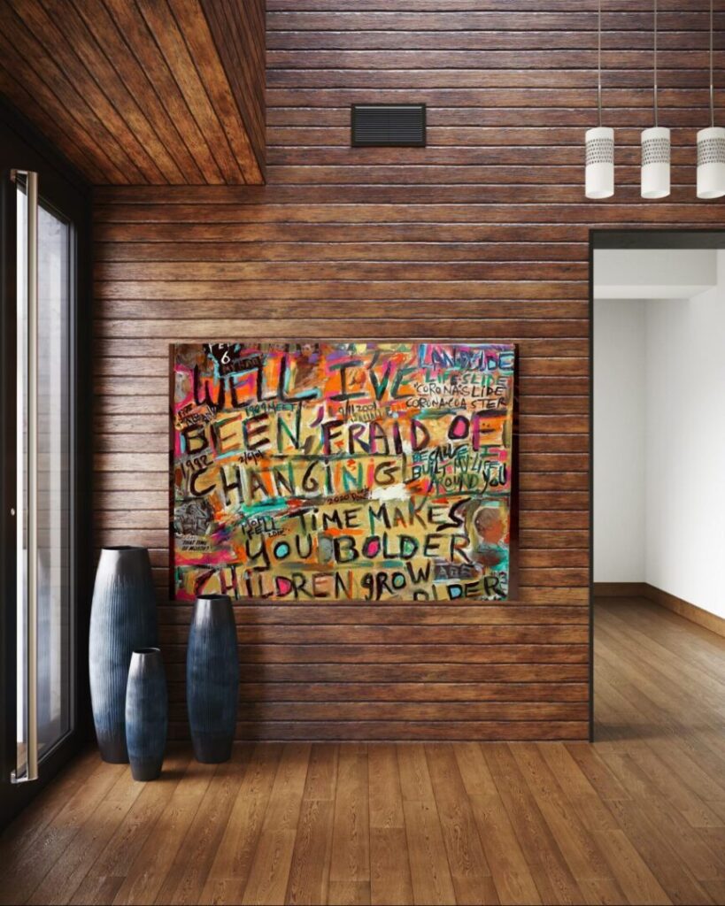 Canvases with images and words, some filled with anger, some with hope and almost all mixed with social and political commentary while also incorporating the things I loved and wanted as I also screamed at the world.